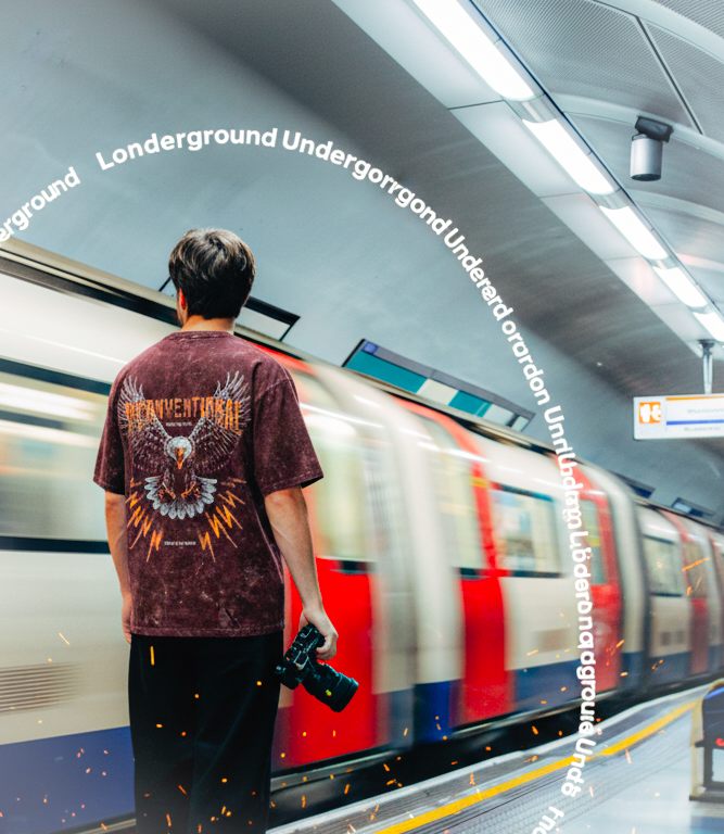 Design: Features a large graphic print of an eagle with lightning bolt details and the text "UNCONVENTIONAL".