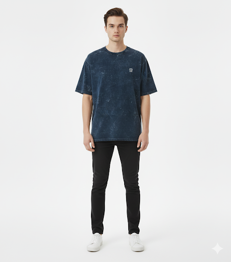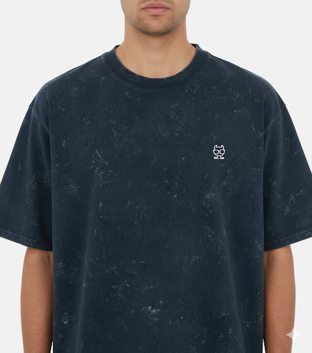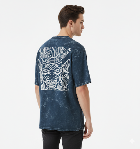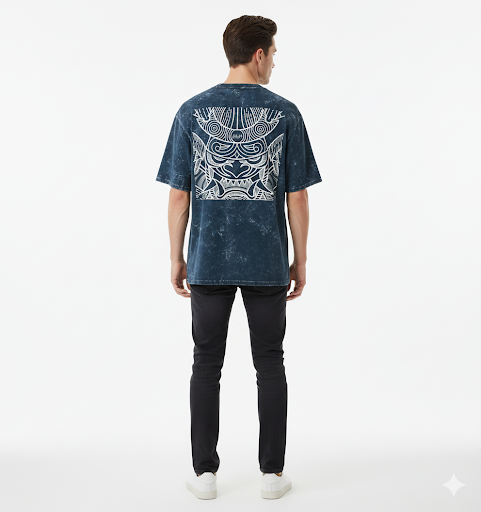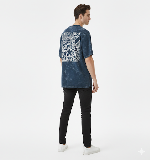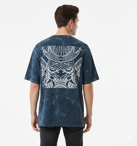 Demonic Aura Oversized Samurai Mask Hajime T-Shirt | 240 GSM Heavyweight Cotton | Dark Blue Acid Wash